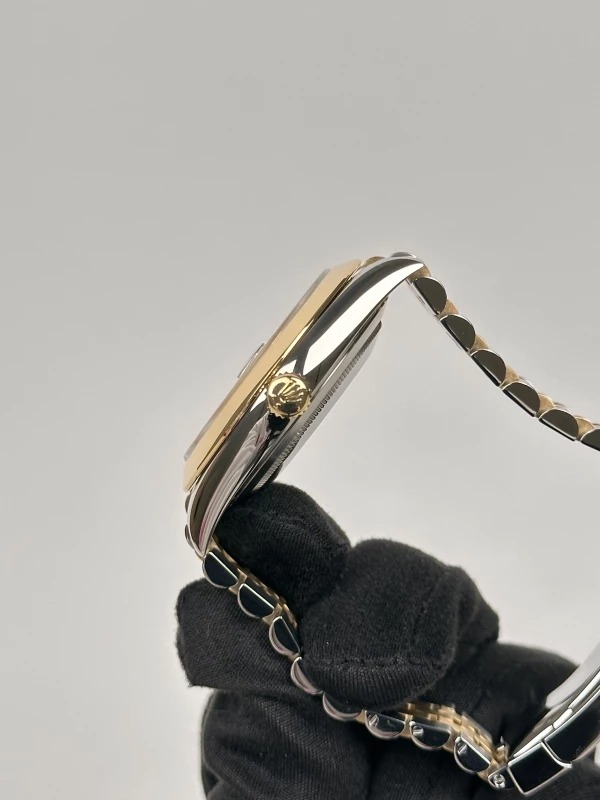 41mm Yellow Rolesor case with 904L steel monobloc middle case, screw-down steel back, 18K yellow gold screw-down crown, 18K yellow gold smooth bezel, scratch-resistant double anti-reflective sapphire crystal with cyclops lens over the date, slate dial, green Roman numerals, Rolex calibre 3235 perpetual self-winding movement with date at 3 o'clock that changes instantaneously at midnight in a few thousandths of a second, approximately 70 hours of power reserve, yellow Rolesor Jubilee bracelet made from a combination of 904L steel and 18K yellow gold with five-piece links, folding Oysterclasp buckle with Easylink 5mm comfort extension link. Waterproof to 100 meters.