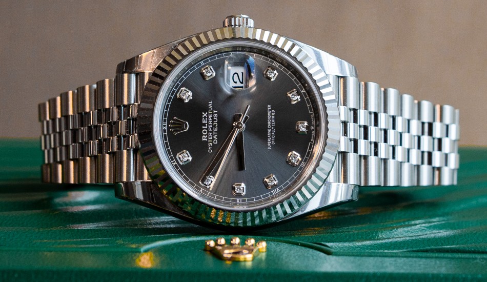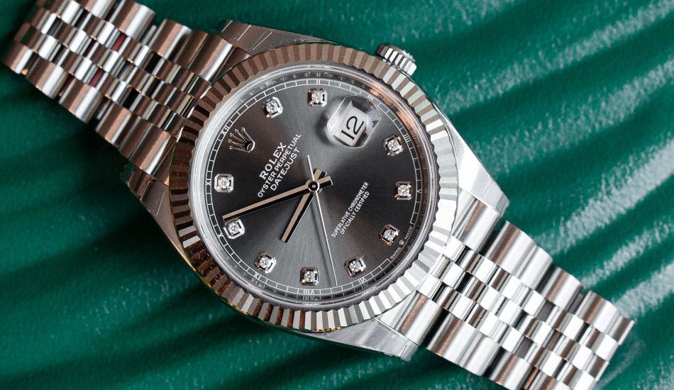 This is a brand-new?Rolex Datejust?ref. 126334. It features a?41mm diamond-set slate dial. Featuring a?Jubilee Bracelet, this watch looks sophisticated and graceful.