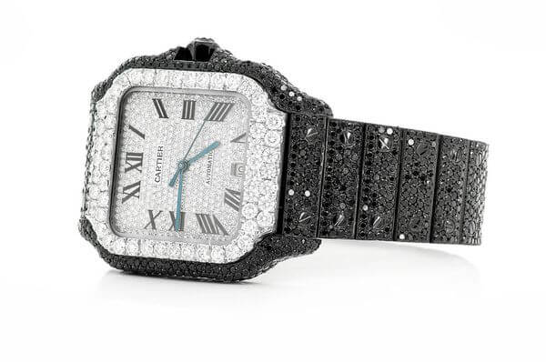 This Cartier Santos is made of Steel and has a 40mm case size with 21.00ctw of diamonds. Our expert watchmakers have serviced this watch inside and out to Cartier quality standards. This watch comes with Cartier box.