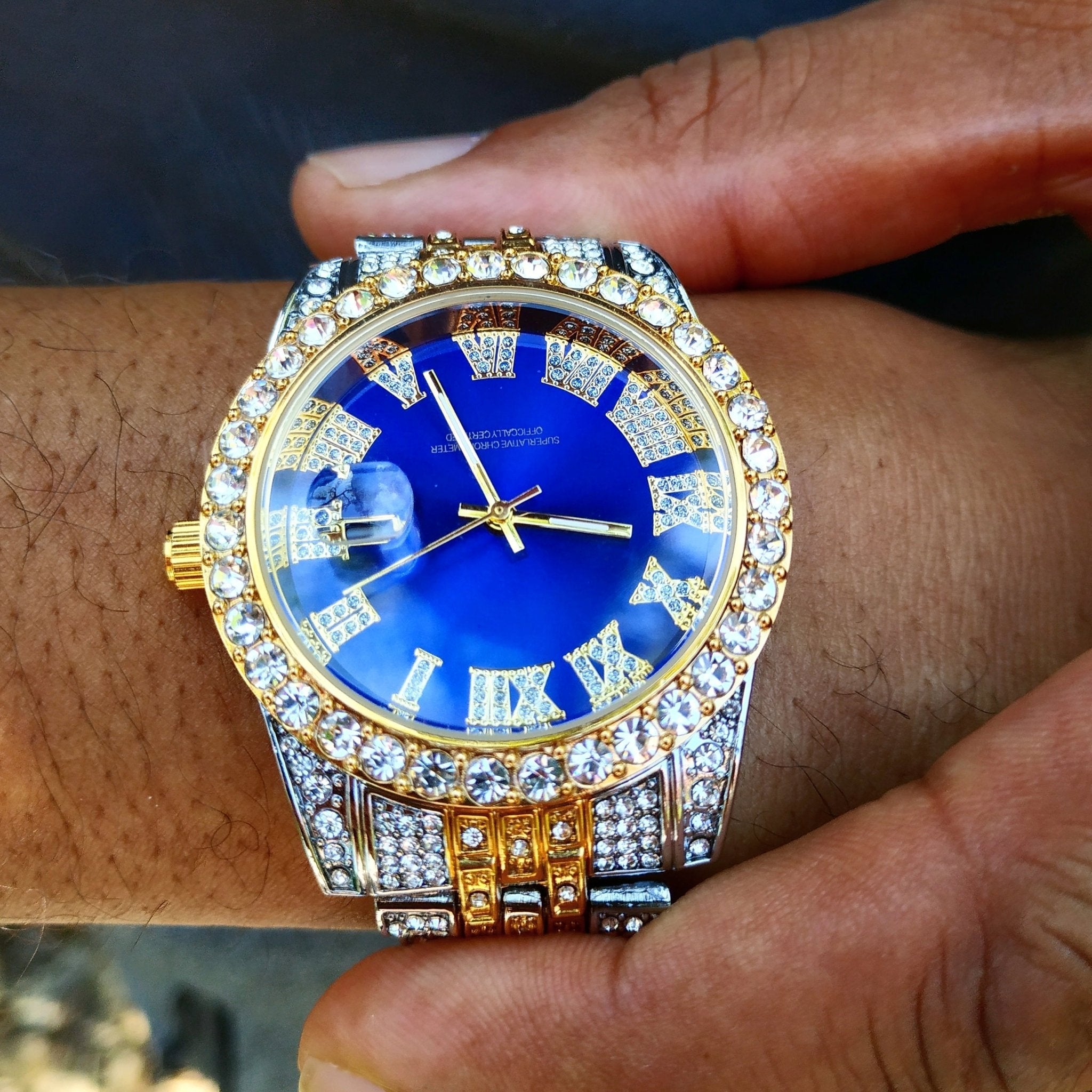 The 18k Gold Diamond Royal Watch is made from High Quality Premium 18k Gold Plating dipped 5 times for a long lasting and durable shine. The watch is made with VVS Grade CZ Diamonds