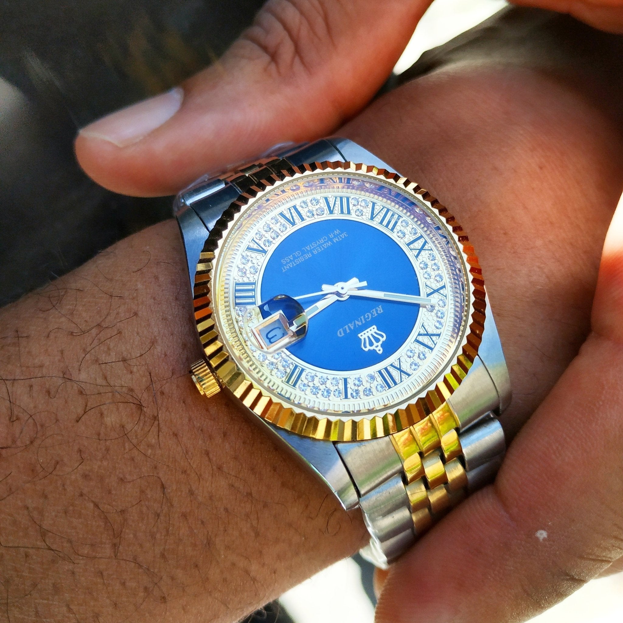 WHITE GOLD AND GOLD WITH BLUE FACE