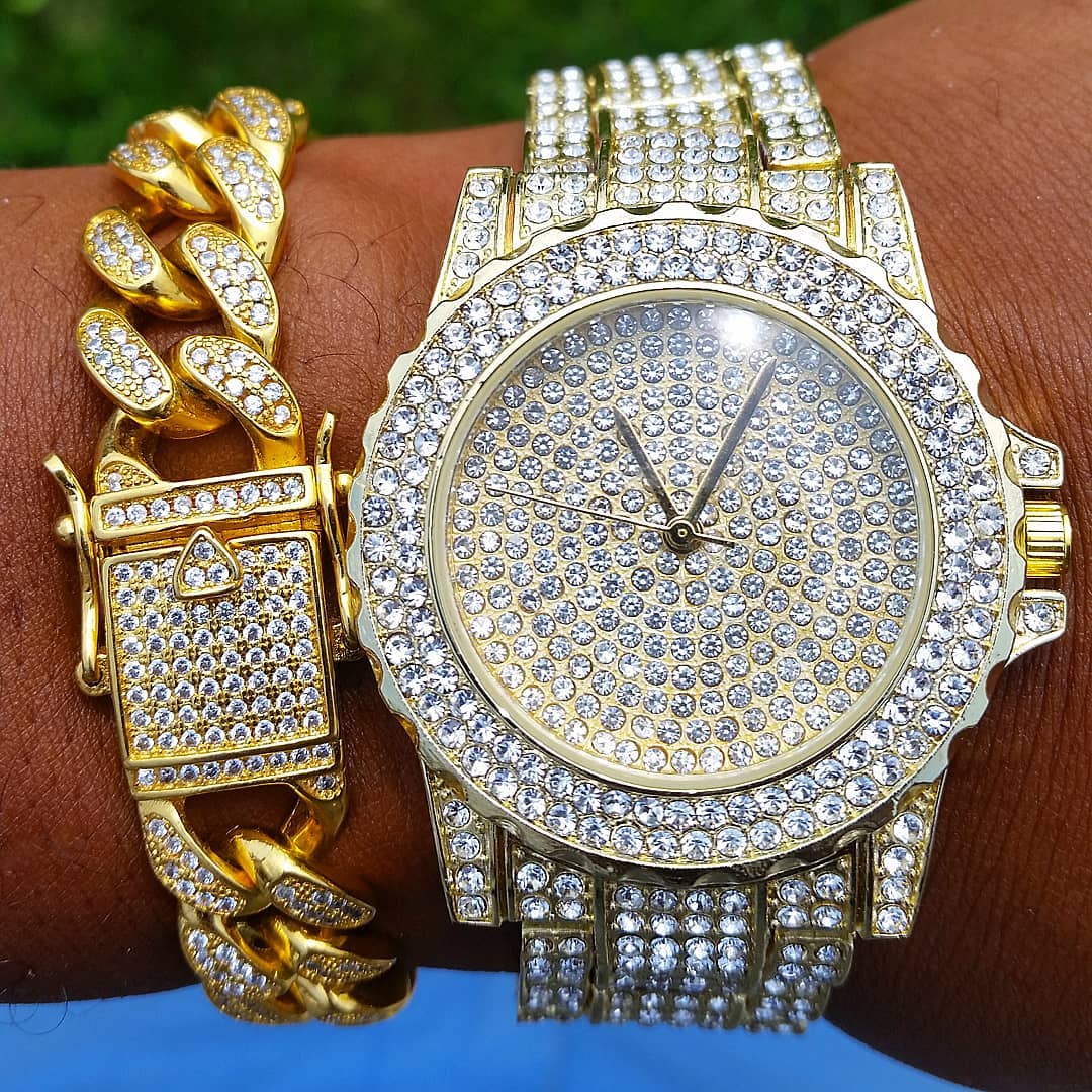 18k Gold Diamond Icy Watch Set