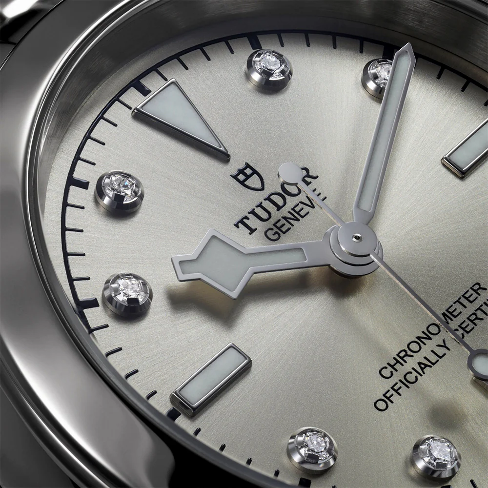 TUDOR Black Bay 39mm Champagne Diamond Set Dial Men's Bracelet Watch M79660-0006. Stainless steel 39mm case and bezel all on a matching steel bracelet. This men's watch has an light champagne dial with polished and luminous applied hands, 8 diamond set hour markers. Water resistant up to 100m and sapphire crystal glass. Automatic movement.