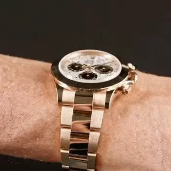 With its tachymetric scale, its three counters and its pushers, the Cosmograph Daytona was designed to be the ultimate timing tool for endurance racing drivers. The bezel features a tachymetric scale to read average speed over a given distance based on elapsed time. This scale offers optimal legibility, making the Cosmograph Daytona the ideal instrument for measuring speeds up to 400 units per hour, expressed in kilometres or miles.