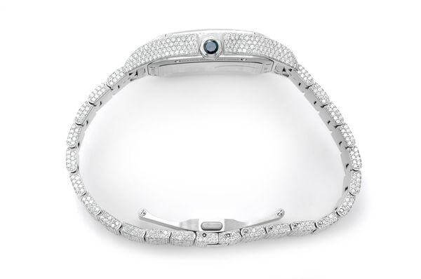 This iced-out Cartier watch is composed of silver and features a 40mm casing with 19.07ctw of diamonds. this watch is made to the highest quality standards . This watch comes with an Cartier box.