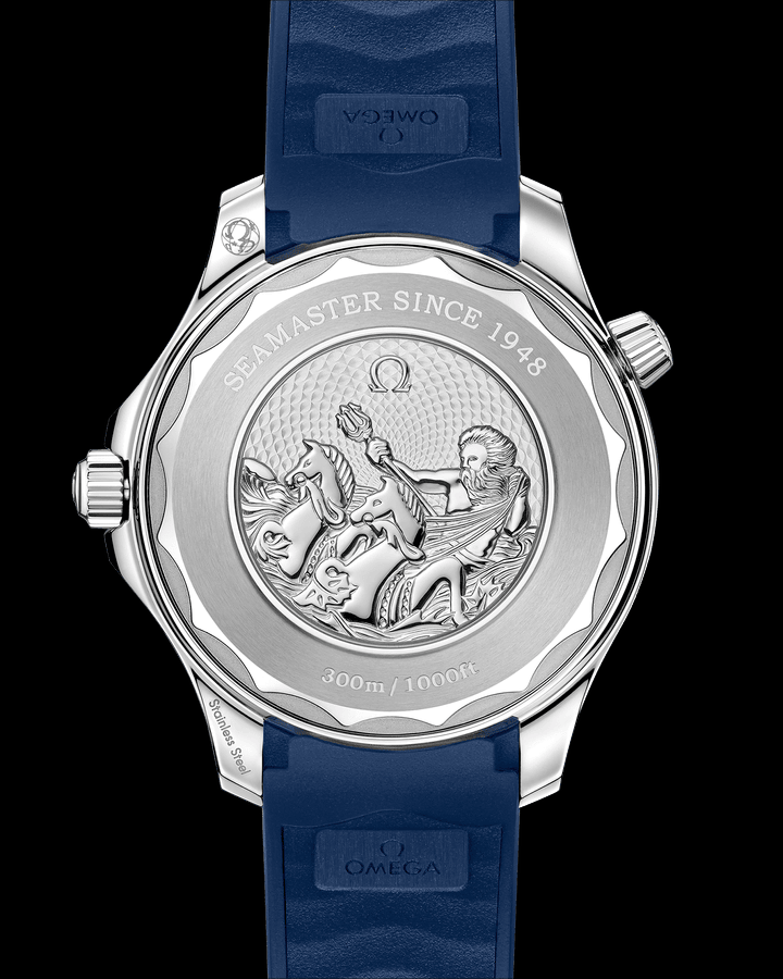 | Bezel: | Blue ceramic unidirectional rotating bezel with a white enamel diving scale. |