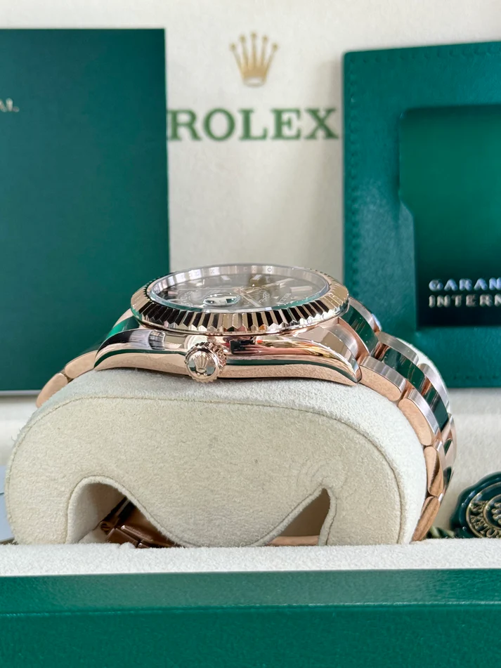 Unworn Rolex Sky-Dweller 330935-0006, 42 mm. The watch has Chocolate Dial. The Case is 18 ct Everose gold w/ 9001 Movement, 72 hours power reserve. The Bracelet 18 ct Everose gold with Folding Oysterclasp with Easylink 5 mm comfort extension link. The Water-resistant is up to 100 m. The Watch comes complete with Rolex Papers & Box. Covered with Rolex 5-Year Warranty.