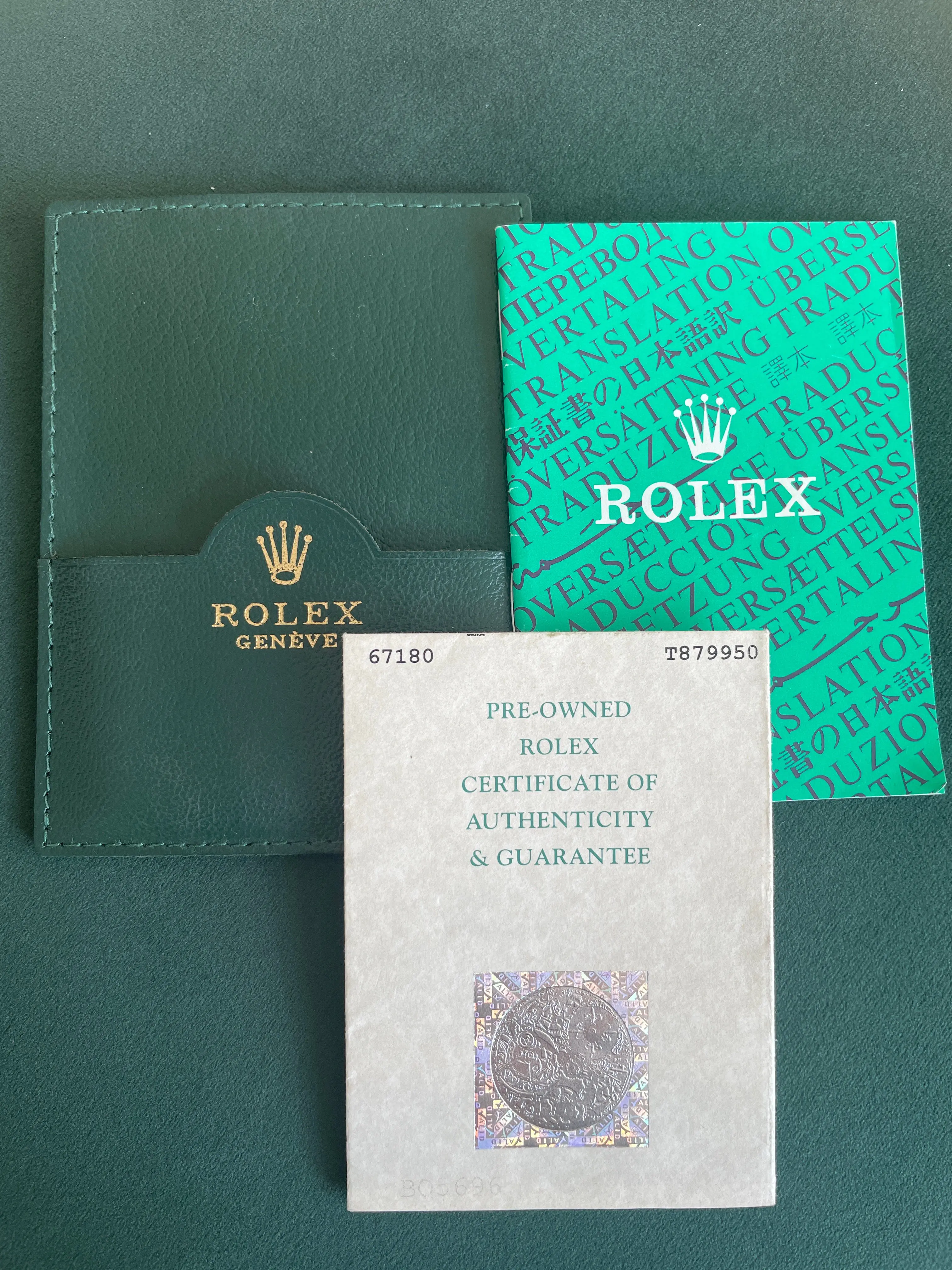 Presented complete with its Rolex box, booklet, both swing tags, bezel protector, WOS card, and UK stamped Rolex international warranty dated June 2019.